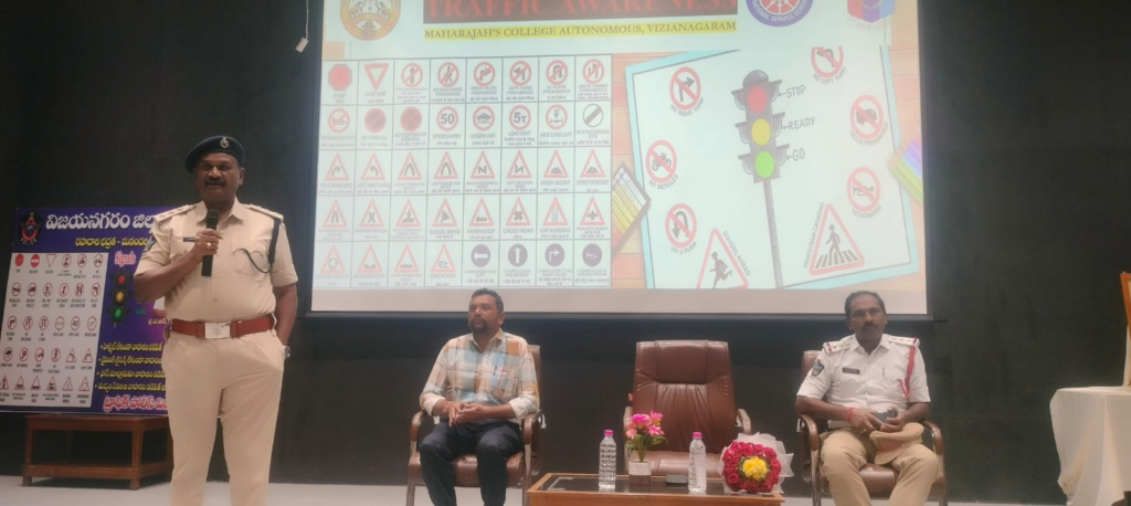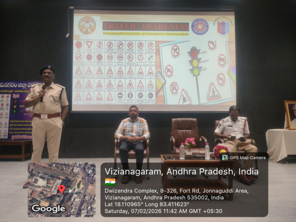 Under the aegis of the NSS and NCC units of Maharaja Autonomous College, a one-day seminar on “Traffic Rules – Road Safety” was organized on 07.02.2026 in collaboration with the Vizianagaram Town Traffic Police Station.