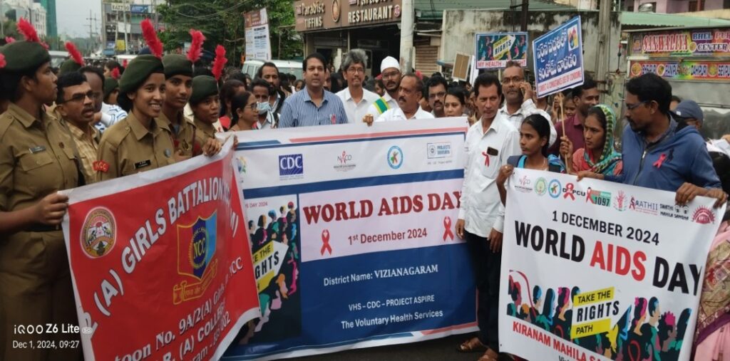A Rally was conducted from Bus Complex to Collector office, VZM to create Awareness on AIDS on 01.12.2024