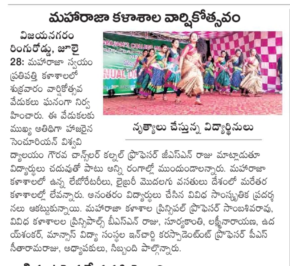 | 25.11.2024 | Organized Cultural Events on Centenary Celebrations of Dr. P.V. G. Raju garu at Dr. Y. V. S. Murthy Auditorium, Andhra University,Visakhapatnam |
