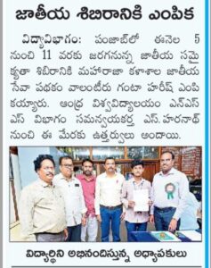 1.Mr. Y. Narendra Kumar received District level best NSS Volunteer award