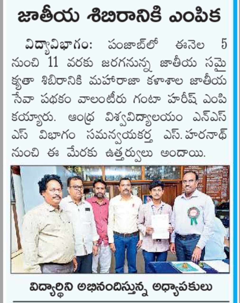 Mr. P. Saheet, II B.Sc ( Physics) & NSS Unit-6 Volunteer has received District level best NSS Volunteer Appreciation Award from Andhra University NSS Cell, Visakhapatnam on 15-08-2025. Received this award from the hands of excellence Prof.G. P. Raja Sekhar, Vice-Chancellor, Andhra University. |